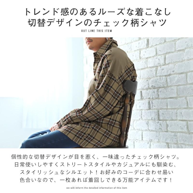 長袖シャツ メンズ チェック柄 ビッグシルエット チェックシャツ 柄シャツ 切替 ストリート Pm 9312 Luxstyle 通販 Yahoo ショッピング